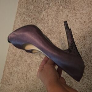 Caparros Purple Peep-Toe Heels With Black Lace Detail Size 8B (Bin 12)