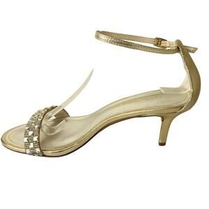 Caparros Size 9B Starla Evening Sandals Gold Jeweled Kitten Heel Ankle Strap Formal