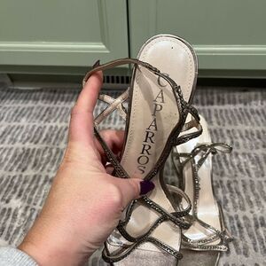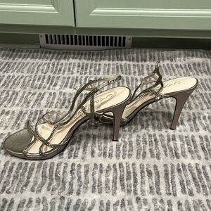 Caparros Stiletto Rhinestone Strappy High Heels Leather Silver Tone Size 9.5 B