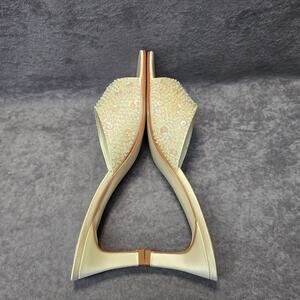 Caparros White Sequin Open Toe Slide On High Heels Mules Women's Size 8B