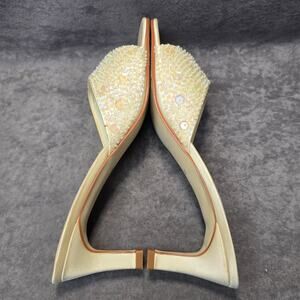 Caparros White Sequin Open Toe Slide On High Heels Mules Women's Size 8B