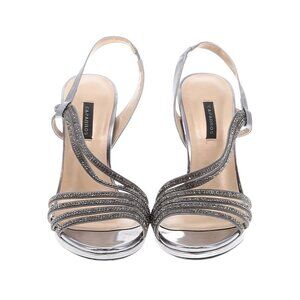 Elegant silver/pewter heels with rhinestones. Leather upper. Beautiful embellishments that all appear present.