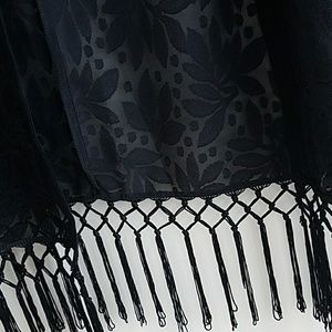 Black cape velvet leaves design! The cut is so classy when you wear it, richy quality.