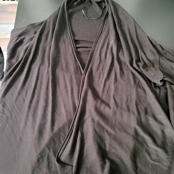 All black very long over coat. Its very light, thin and flowy.