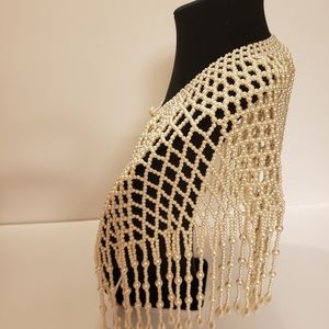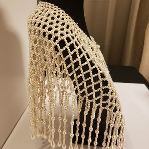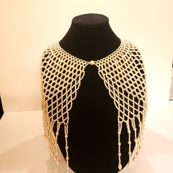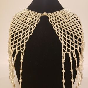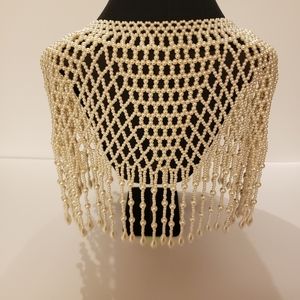 Beautiful classic pearl handmade bib. This necklace is elegant with anything. You can wear it with any solid colored dress or tank top for the perfect accent piece. You can wear it to the frontwards or backwards.