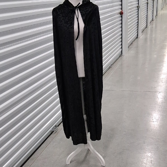 Black Crushed Velvet Cape with Hood. One Size fits most. 48" Long. New. Never worn.