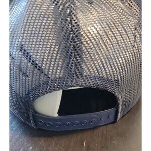 This is a pre-owned Cape Canaveral AFS Patch Trucker Hat with a blue color scheme. It features a Yupoong brand, one size fits all, and is designed for men. The hat is adorned with an Air Force Station NASA Space Shuttle Cap patch and has a space theme.