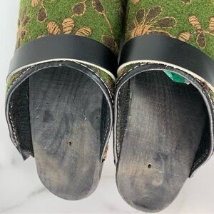 Cape Clogs Womens Mules Shoes Green Wool Slip On Floral Embroidered Round Toe 37