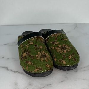 ❤️Lovely Cape Clogs Womens Mules Shoes Green Wool Slip On Floral Embroidered Round Toe