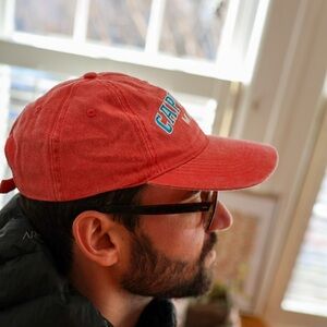 Stylish and comfortable Baseball Cap featuring 'Cape Cod Mass' embroidery. Perfect for sunny days and outdoor adventures. Color is a pink melon sometimes referred to as Nantucket Red.