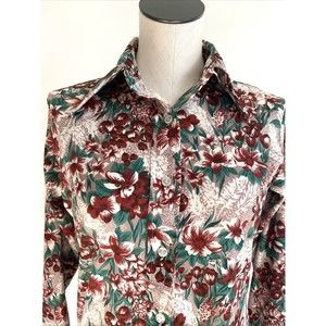 Cape Cod Match Mates Women's Size 12 Button Down Floral Shirt Blouse VTG 70s