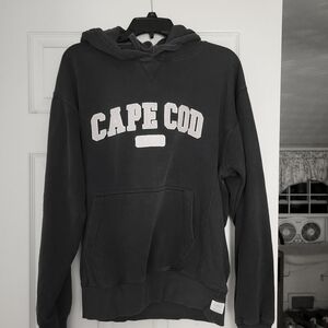 Cozy navy hoodie with pink Cape Cod lettering. Perfect for casual wear.