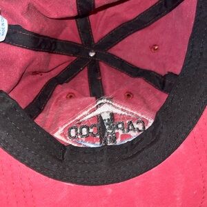 Stylish and comfortable red cap featuring a Cape Cod design. Perfect for sunny days and outdoor adventures. Some wear but nothing to make it damaged