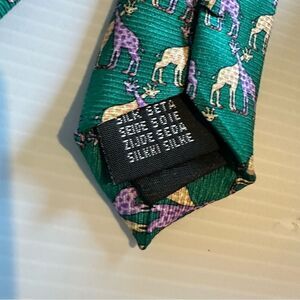 Cape Cod neckwear green 100% silk tie with purple and yellow giraffes