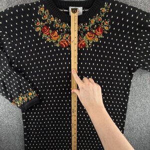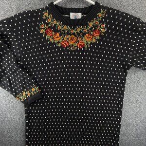 Cape Isle Knitters Women Sweater Small Floral Embroidered Pullover Knit Crew