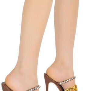 Cape Rhinestone Chain Square Toe Heels