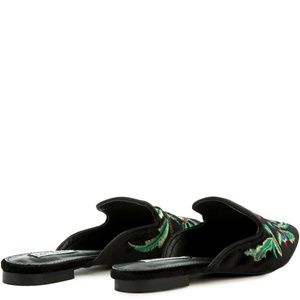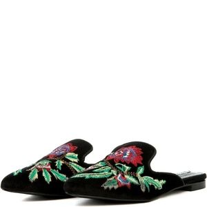 Cape Robbin Black Floral Embroidered Slip On Mules