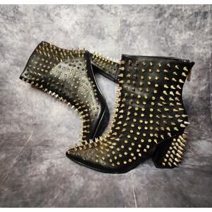 Cape Robbin Black Gold Studded Spikes Platform Boots Gothic Sexy Unique Size 8.5