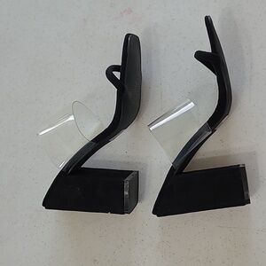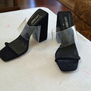 Cape Robbin Black Suede Heeled Sandals with Clear Strap Size 8