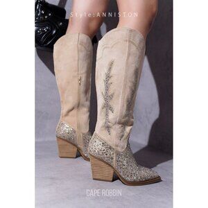 Cape Robbin Block Studded Western Cowboy Boots Ivory Size 8
