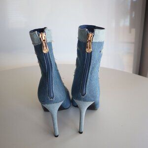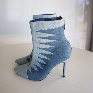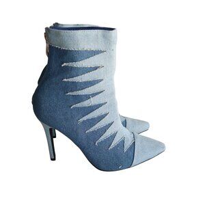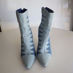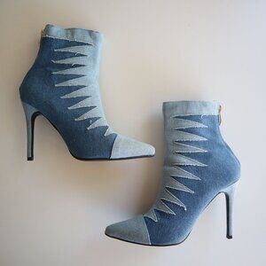 Cape Robbin Denim Stiletto High Heel Ankle Boots W/ Zigzag Design Women's Size 7