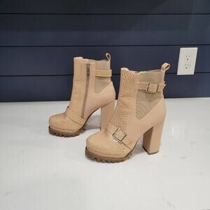 Cape Robbin Garnet Nude Heeled Booties with buckles and Snakeskin look S…