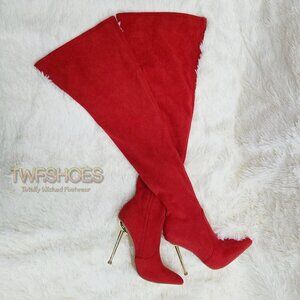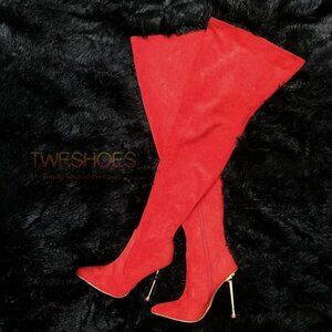 Cape Robbin Holden Red Stretch Wide Top Thigh High Boots Slim Heel