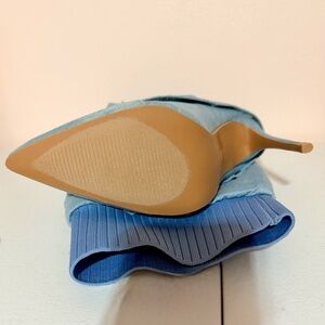Cape Robbin Light Wash Denim 4 1/2 " Stiletto Heel Skirted OTK High Boot