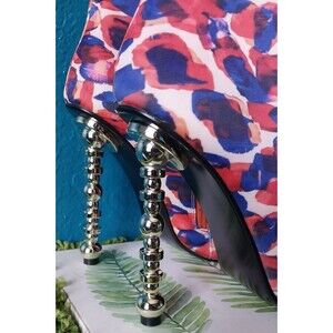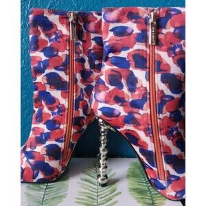 Cape Robbin Metal Heel Blue Pink Print Pointy Toe Ankle Boots Shawna Sz 7.5