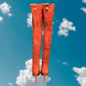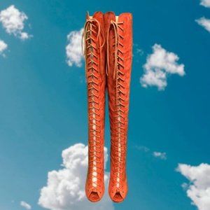 Cape Robbin Olga-1 Salmon Lace-up Stiletto Over-the-knee Boots 6.5 Gently Used Condition Minimal Signs of Wear Shaft: 22.5"" Heel: 4.5"" Zips up the back for easy wearing. Check out my boutique stocked with one-of-a-kind items for all of your fabulous UPCYCLED FASHION needs!