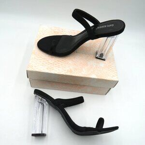 Cape Robbin Shoes Womens Size 7.5 Black 4.5" Clear Block Heel Sandals New in Box