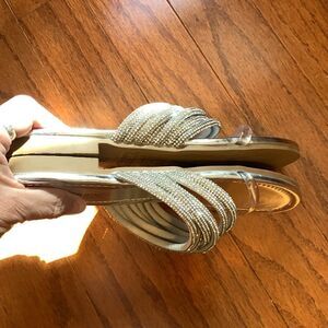 Cape Robbin Size 9 Silver rhinestone rope slip on flat sandals