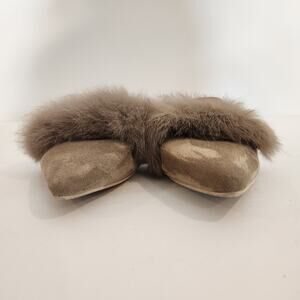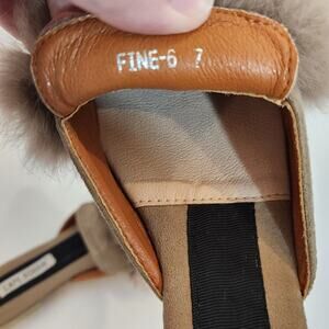Stylish tan mules with fluffy accents. Perfect for casual wear.