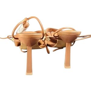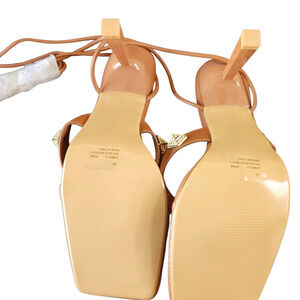 Very cute heels that wrap up the leg. New in box. Step out in style with these Cape Robbin tan sandals. Featuring chic studded details, these shoes are perfect for any occasion. Elevate your wardrobe with this fashionable and versatile pair.