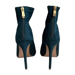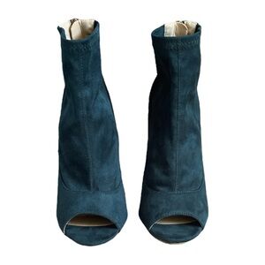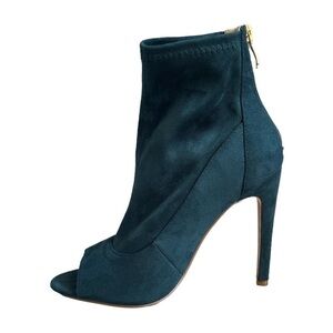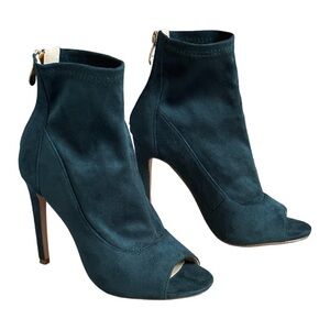 Cape Robbin Teal Velvet Peep Toe Stiletto Ankle Booties Heels Zip Size 6