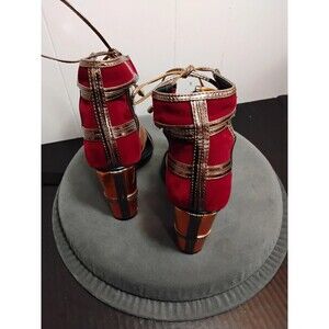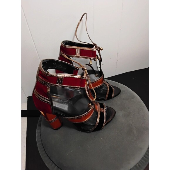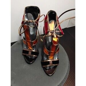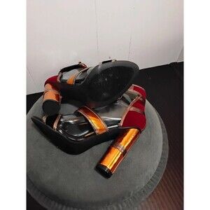 The Cape Robbin Women Shoes in size 7.5 with a 4.5" heel are stylish strappy heels with an open toe and lace-up closure. These versatile shoes are perfect for a party or casual occasion, featuring an ankle strap and ultra-high block heel for added flair. Made of faux leather with a synthetic outsole and lining, these multicolor heels with striped pattern are a fashionable choice for the summer, fall, and spring seasons. Designed by Cape Robbin, these heels are a trendy addition to any woman's shoe collection, ideal for a going out theme. Has some peeling on the inside, can't be seen with shoes on