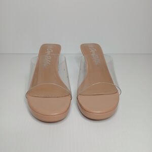 Cape Robbin Women's Clear Low Block Heels Slip-On Transparent Nude Size 9