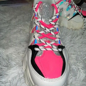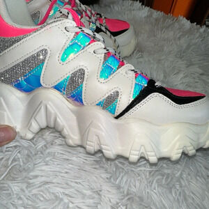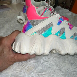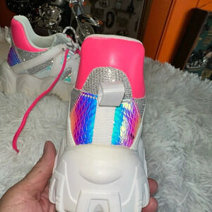 Cape Robbin Women’s Sz 7 White Hologram Chunky Platform Sneakers Dual Laces NEW