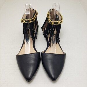 Cape Robin Black Fringe Chain Zip Slip-on Flats Sz 6.5