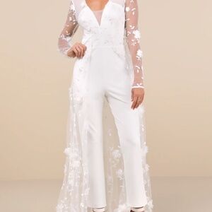 Immaculate Favorite White Mesh Embroidered Capr Jumpsuit