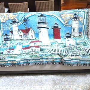 Cape Cod and Islands Lighthouses Tapestry Throw Blanket Donna Elias Vintage