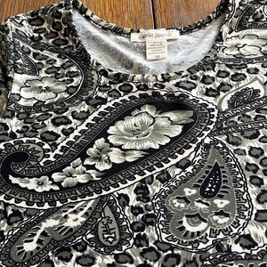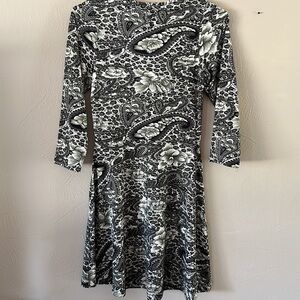 Capella Apparel Knit Dress Paisley Print size M Flared skirt from waist. Very soft knit. Paisley is green and black and cream colored