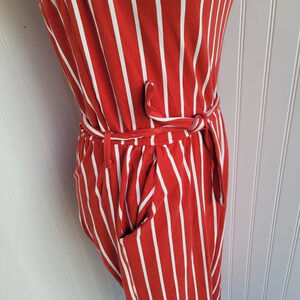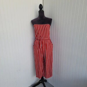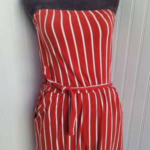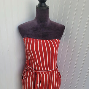 Capella Women's Red White Striped Strapless Stretch Jumpsuit Waist Tie Sz S