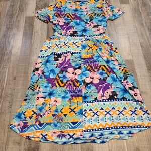 Show off your unique and fashionable style with this medium-fitting dress and its abstract floral colors.