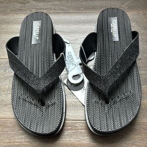 Capelli Comfort Sole Thong Flip Flops,textured sturdy rubber,metallic threading