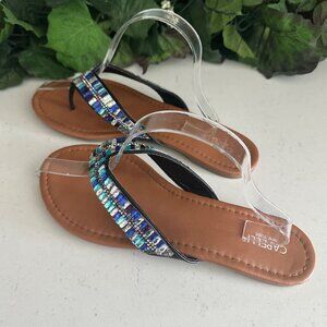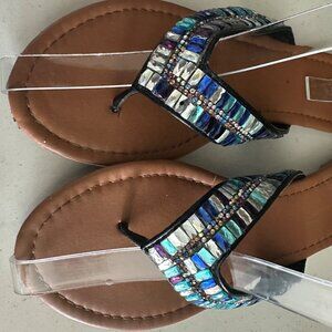 Capelli New York Beaded Thong Sandals Size 9 Brown & Multicolor