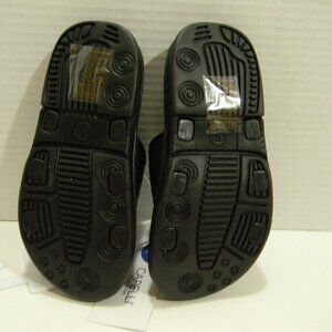 Capelli New York black camo slides. With comfort insole and adjustable top (hook and loop). Available in several boys sizes. Size 12/13 measures 8 inches on bottom of sole from toe to heal. Size 1/2 measures 8.5 inches on bottom of sole from toe to heal. All new with tags (no box). Perfect as pool, boat or shower shoes (camp) or just as easy slip on shoes for play in warmer weather.