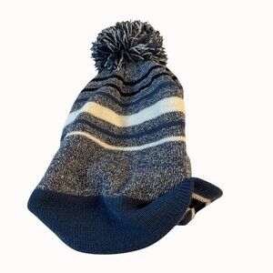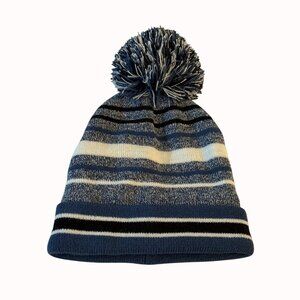 Kids Blue & White Striped Capelli New York Pom-Pom Beanie Hat Size Child Winter Warm