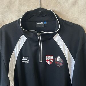 Capelli Sports Men’s Size XXL Coast Futbol Alliance 1/4 Zip Pullover. Please reference attached pictures for style for embroidered and heat transfer Graphic Logos, colors, condition and approximate sizing