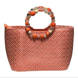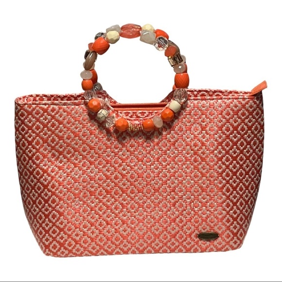 Capelli Woven Straw Beaded Handbag Handle Boxy Beach Weekend Spring Fashion Logo